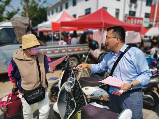 发放科普宣传材料。(摄影 迟小军)